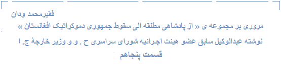 ـ حجت الاسلام سید رحمت الله مرتضوی، سخنگوی حزب وحدت اسلامی نیز در همین ملاقات به روتسکوی میگوید:«شما وقتی دل ملت ما را بدست می آورید که رژیم کابل را که ملت ما آن را نمیخواهد، از میان بردارید.»(فضل الرحمن فاضل و فیض الرحمن وثیق، همانجا، صفحه 19، تکیه از: ف. ودان) و باز تأکید مینماید:«عامل اصلی پرابلم ها رژیم کابل است اگر از بین برده شود، دیگر همه معضلات حل می شود.»(همانجا، صفحه 20)